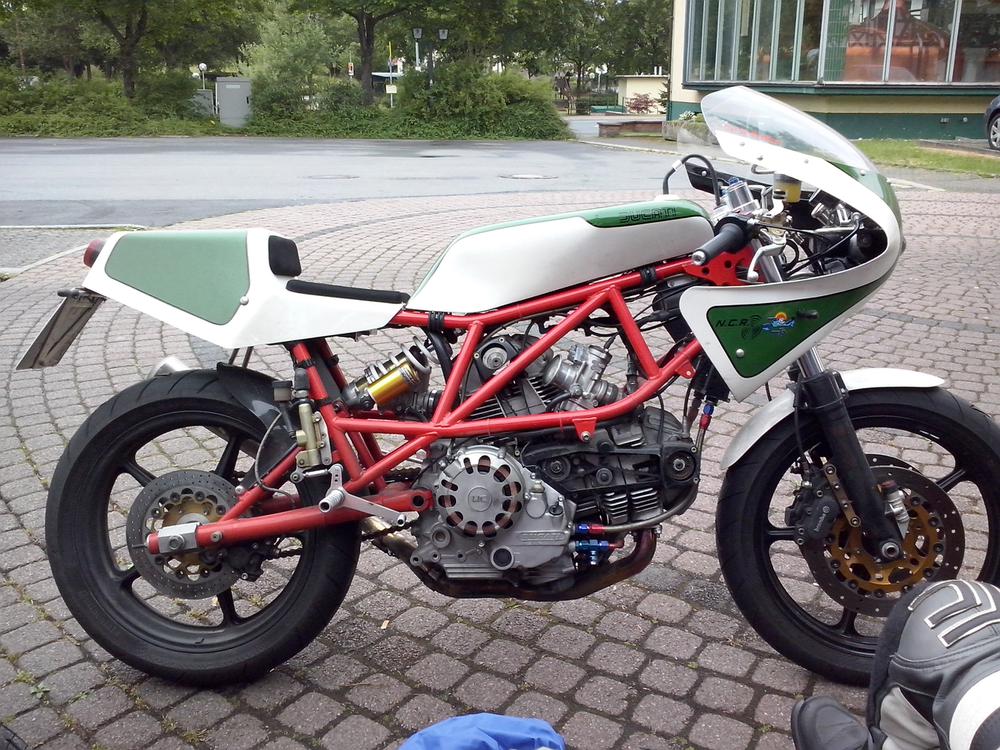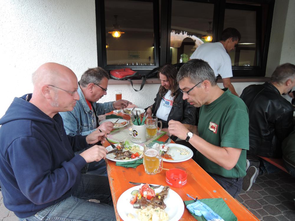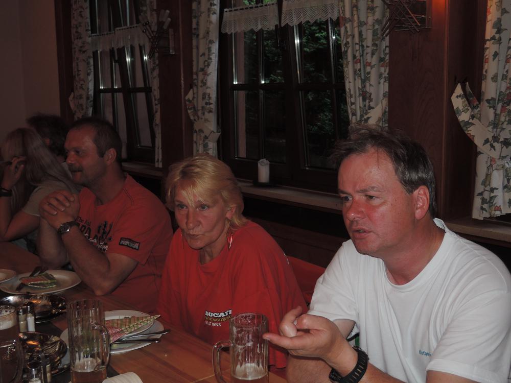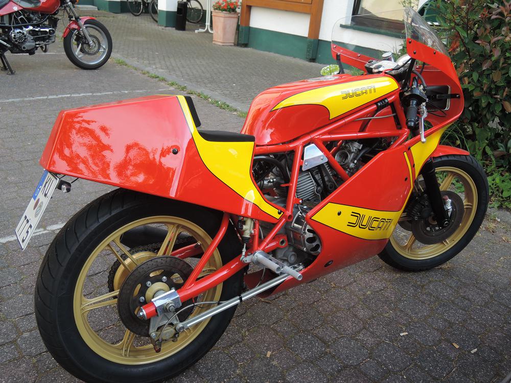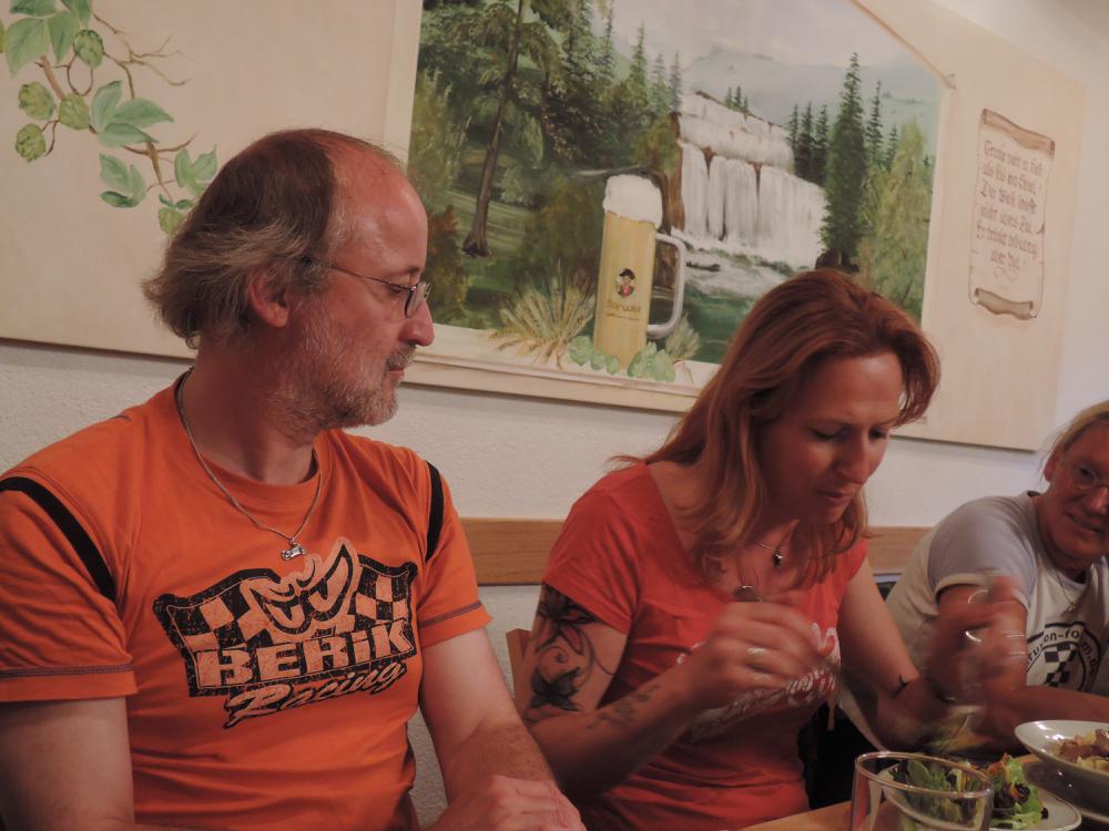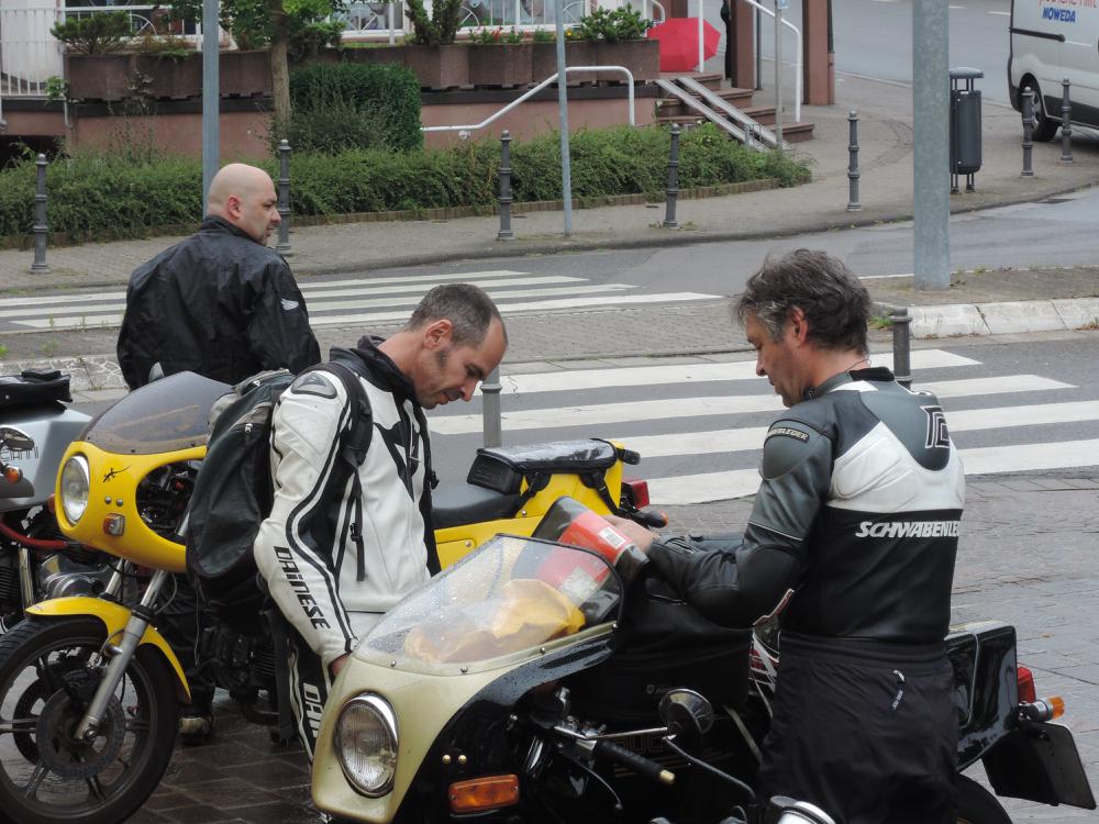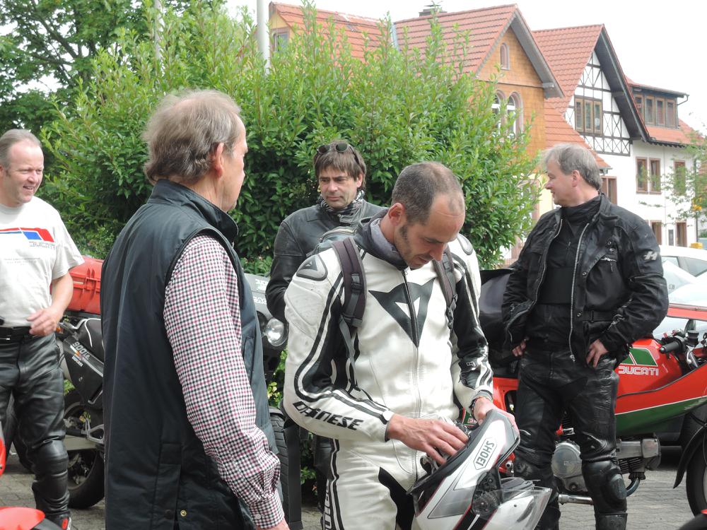 Der Samstag war leider so feucht, dass die geplante Ausfahrt nur stark verkürzt stattfand. Höhepunkt war der Besuch bei Zweirad Röth, die Führung von Fritz Röth durch sein Museum gab einen guten Eindruck über die doch recht wechselhafte Ducati-Geschichte – offensichtlich hat er sich sehr über die vielen Pantahs und auch zwei Königswellen auf seinem Hof gefreut. Nach dem Mittagessen wurde dann die Ausfahrt wegen andauerndem Regen beendet. Erst am späten Nachmittag kam dann wieder die Sonne raus und die nun guten Straßenverhältnisse wurden für Ausfahrten in kleiner Gruppen genutzt – das hat sehr für den verregneten Vormittag und Mittag endschädigt. Der Abend ging mit einer Grillveranstaltung zu Ende.