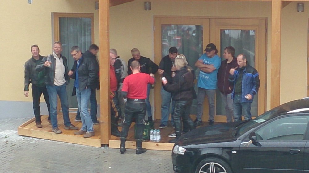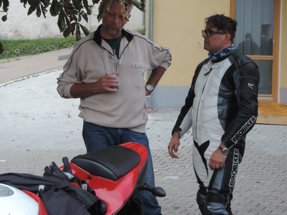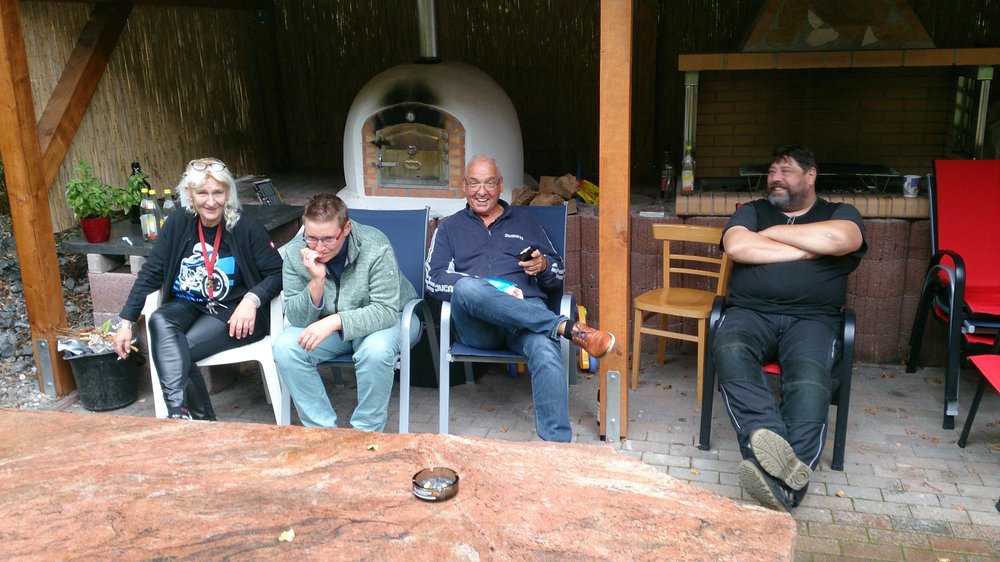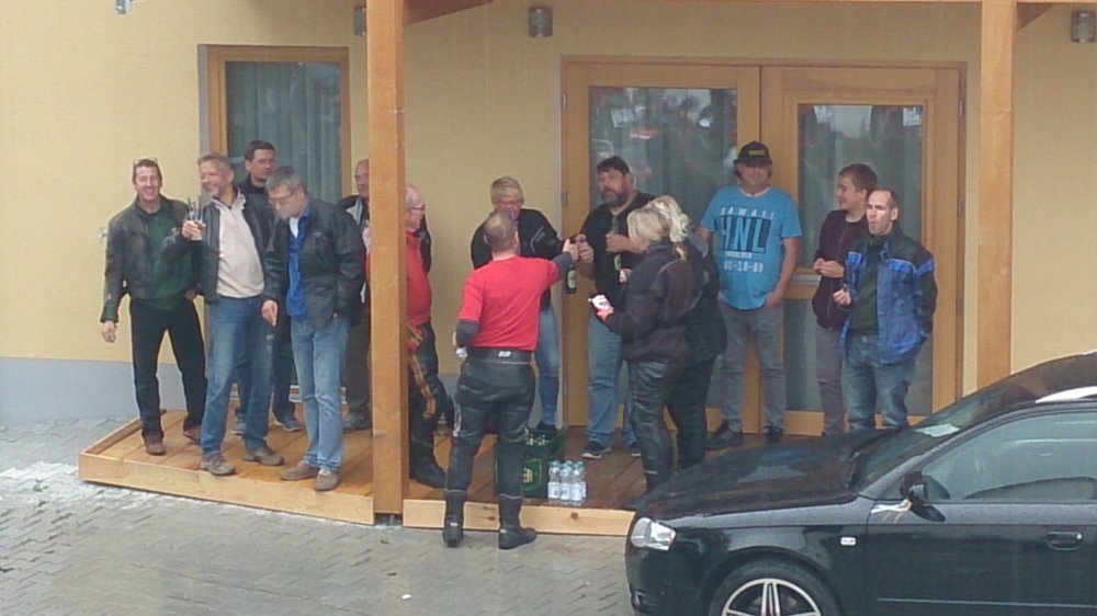 Als überaschende Unterbrechung der Ausfahrt gab es eine Brotzeit im Waldclubhaus des Motorrad-Clubs, in dem Werner Mitglied ist – das war sehr lecker und prima organisiert.