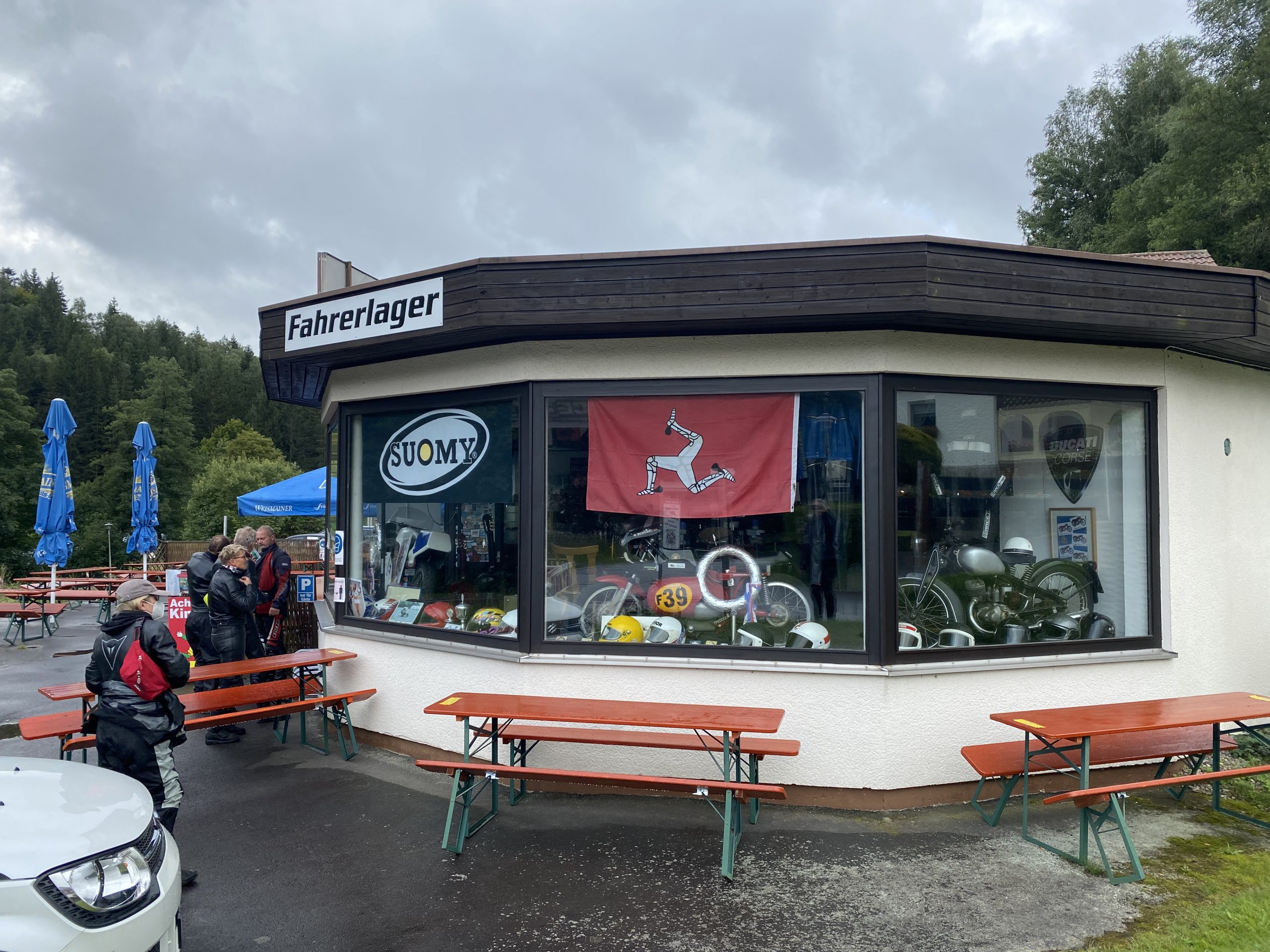 Am darauf folgenden Freitag machten wir eine erste kleine Ausfahrt. Wir fuhren durch das Fichtelgebirge zum Motorrad Treffpunkt Fahrerlager. Das Wetter hielt einigermaßen.