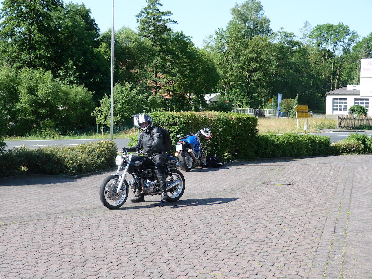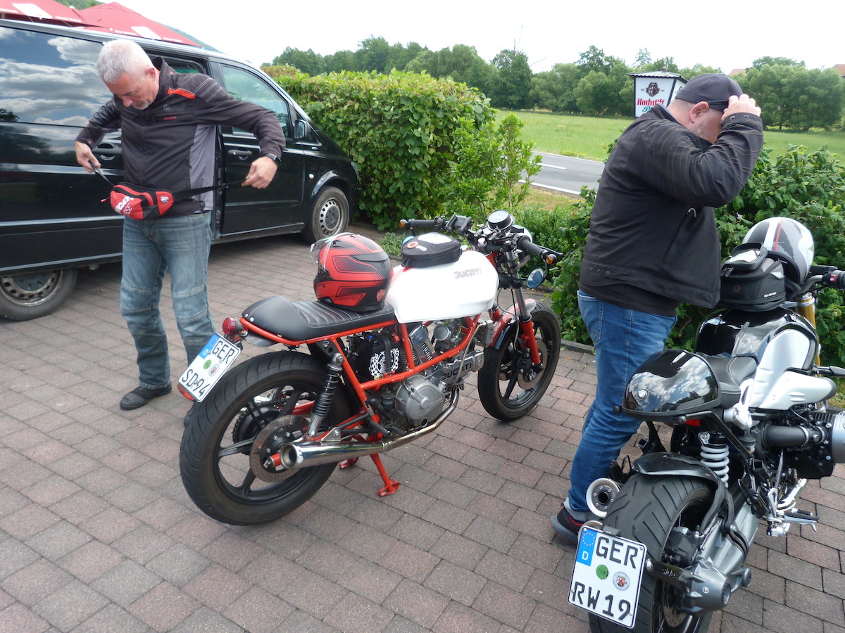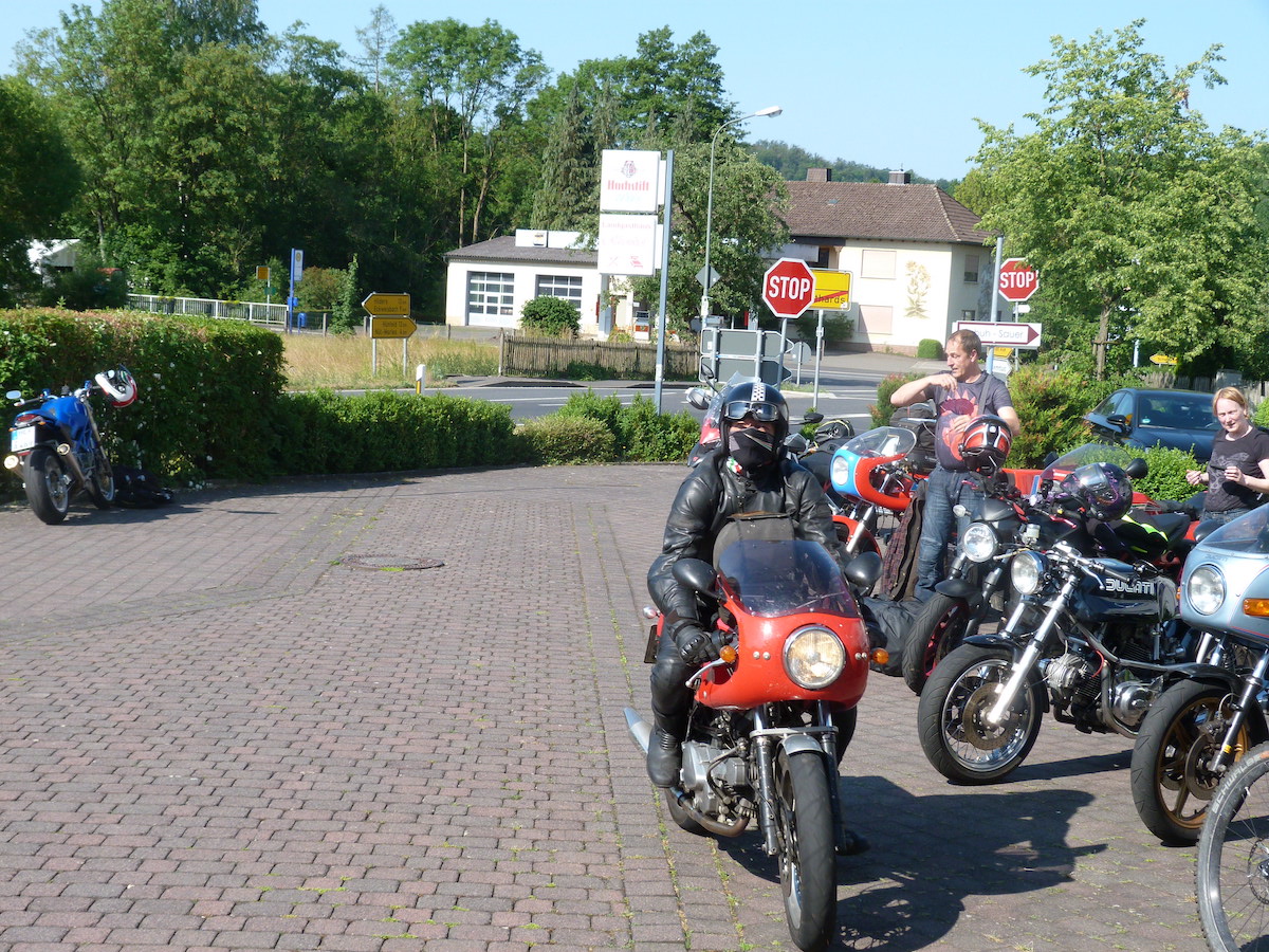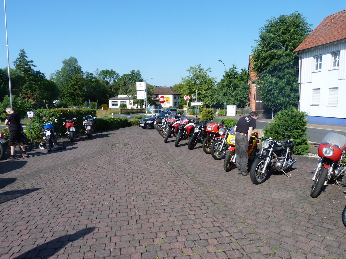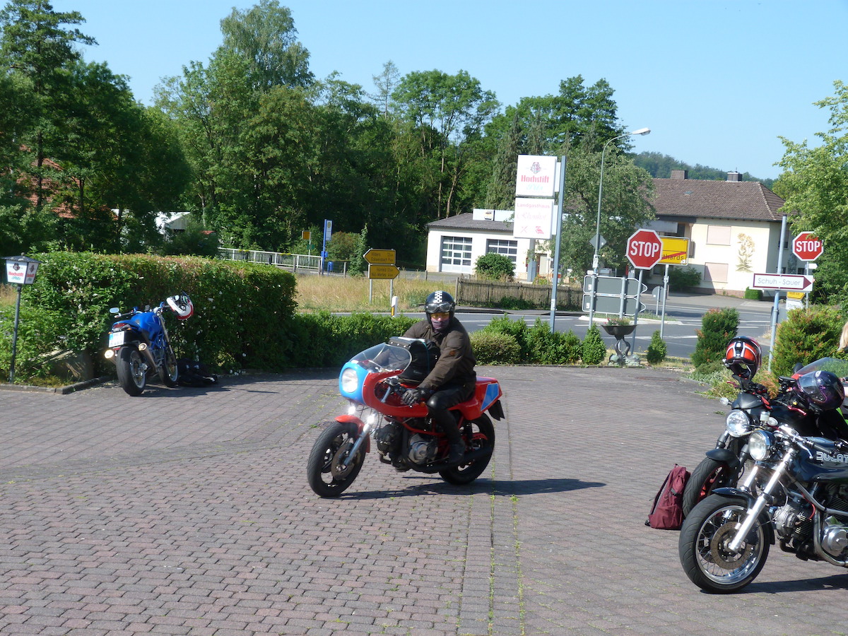 Es gab bei der Ausfahrt auch keine Pannen, außer bei Thomas an der Pantah haben die Blinker hinten nach der Ausfahrt den Geist aufgegeben, das konnten wir jedoch mit Hilfe anderer Blinker und etwas Schrauber Geschick wieder reparieren, so dass das Mopped auch verkehrssicher für die Rückfahrt war.