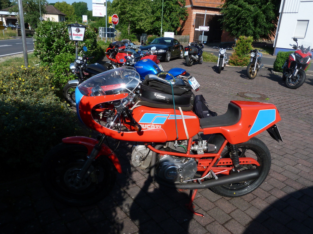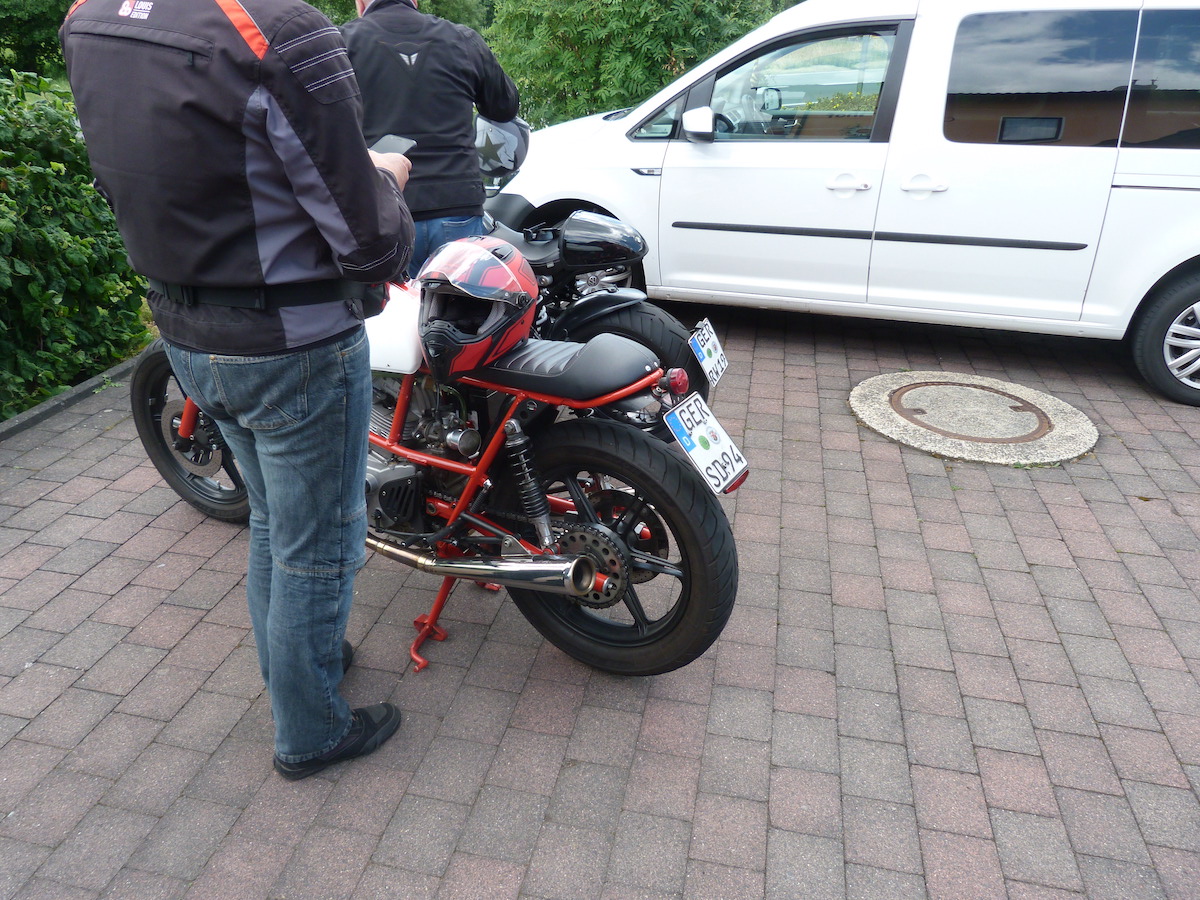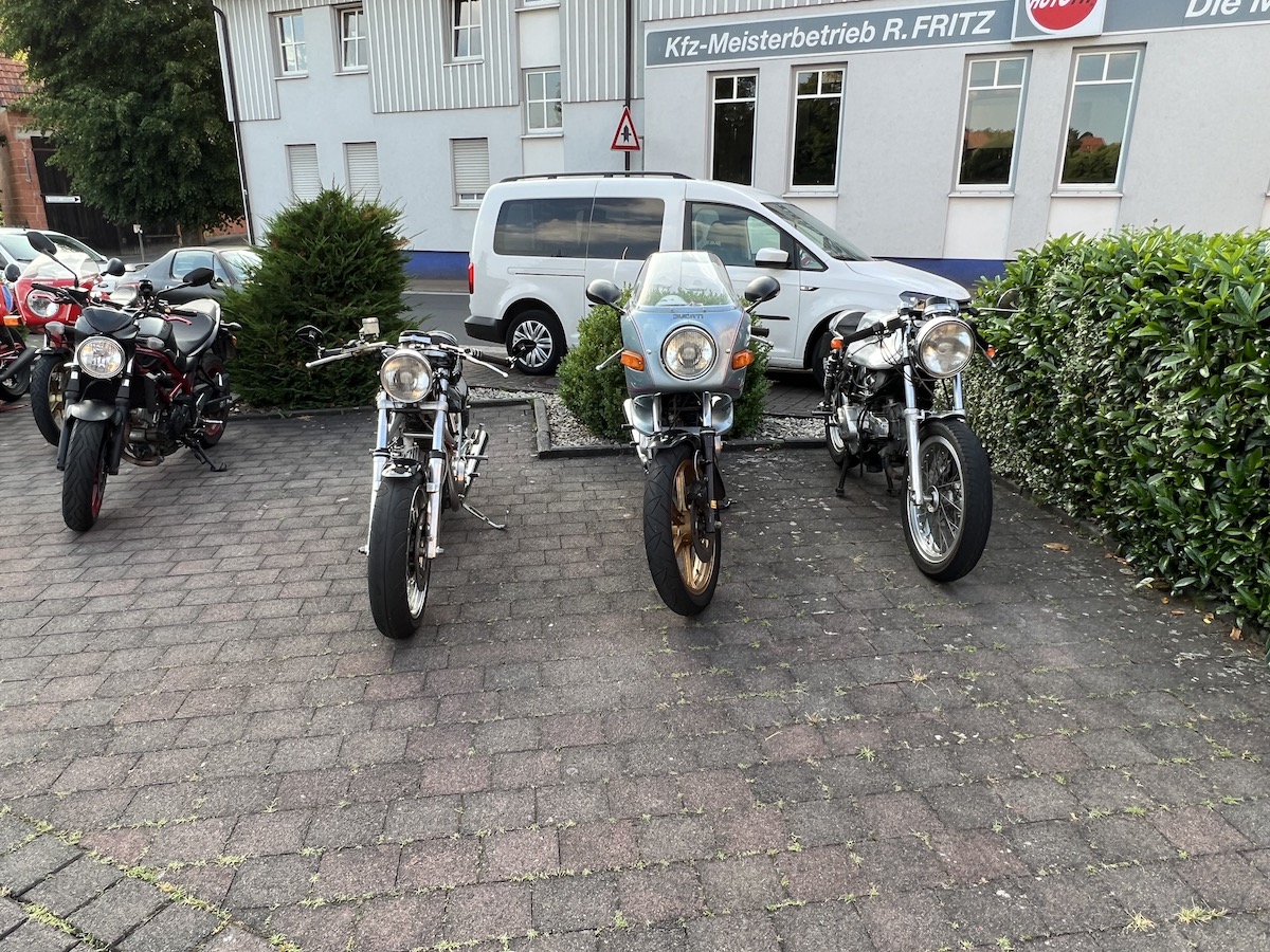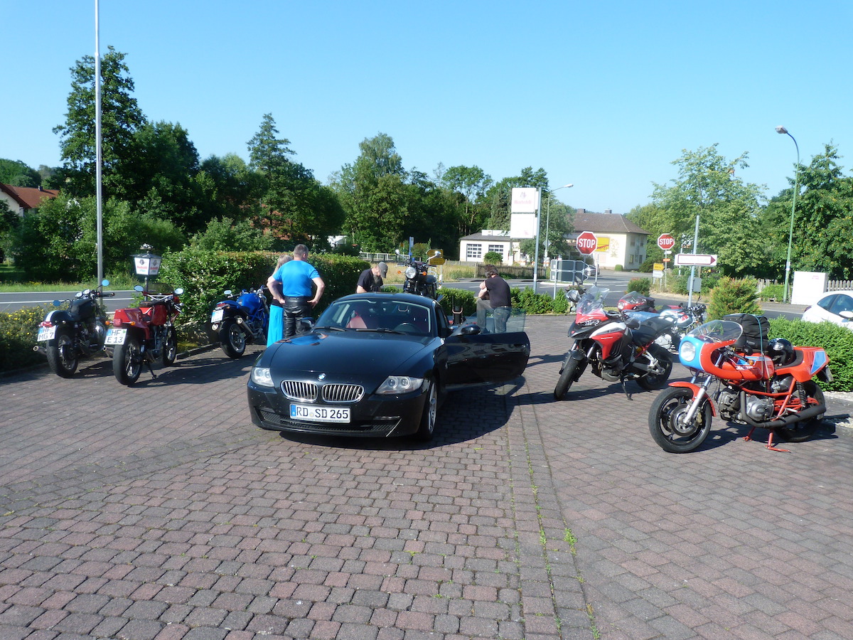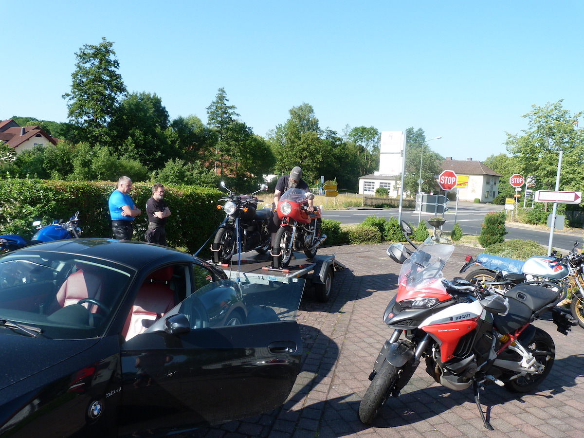Es gab bei der Ausfahrt auch keine Pannen, außer bei Thomas an der Pantah haben die Blinker hinten nach der Ausfahrt den Geist aufgegeben, das konnten wir jedoch mit Hilfe anderer Blinker und etwas Schrauber Geschick wieder reparieren, so dass das Mopped auch verkehrssicher für die Rückfahrt war.