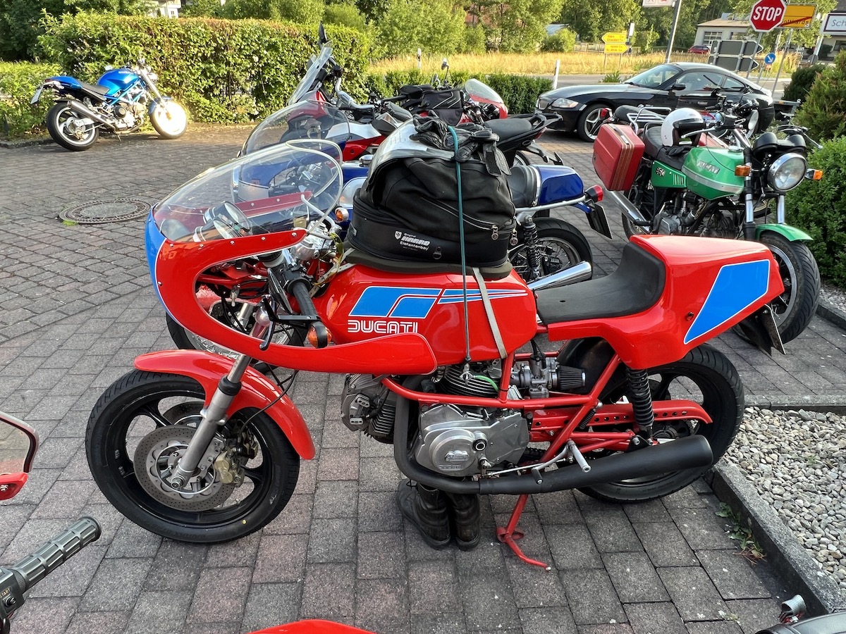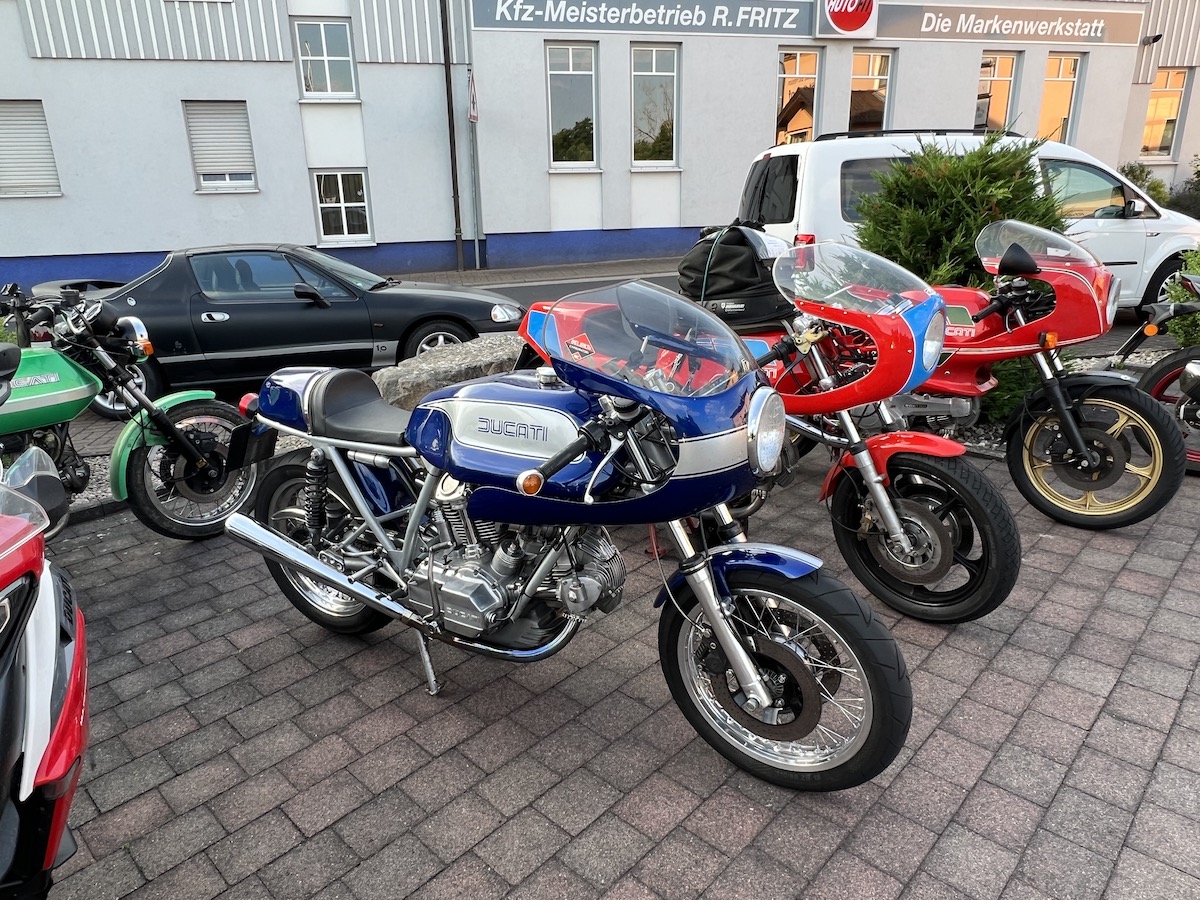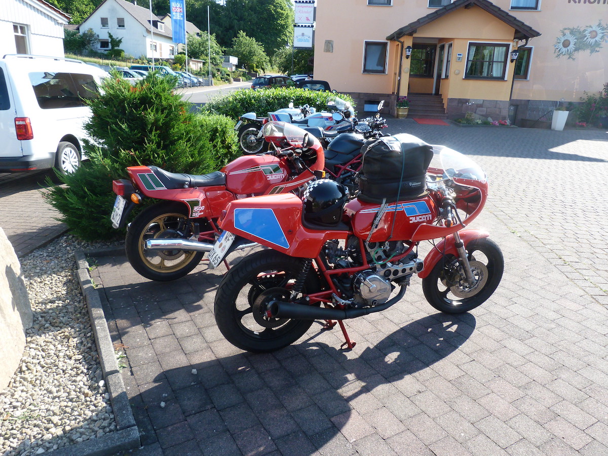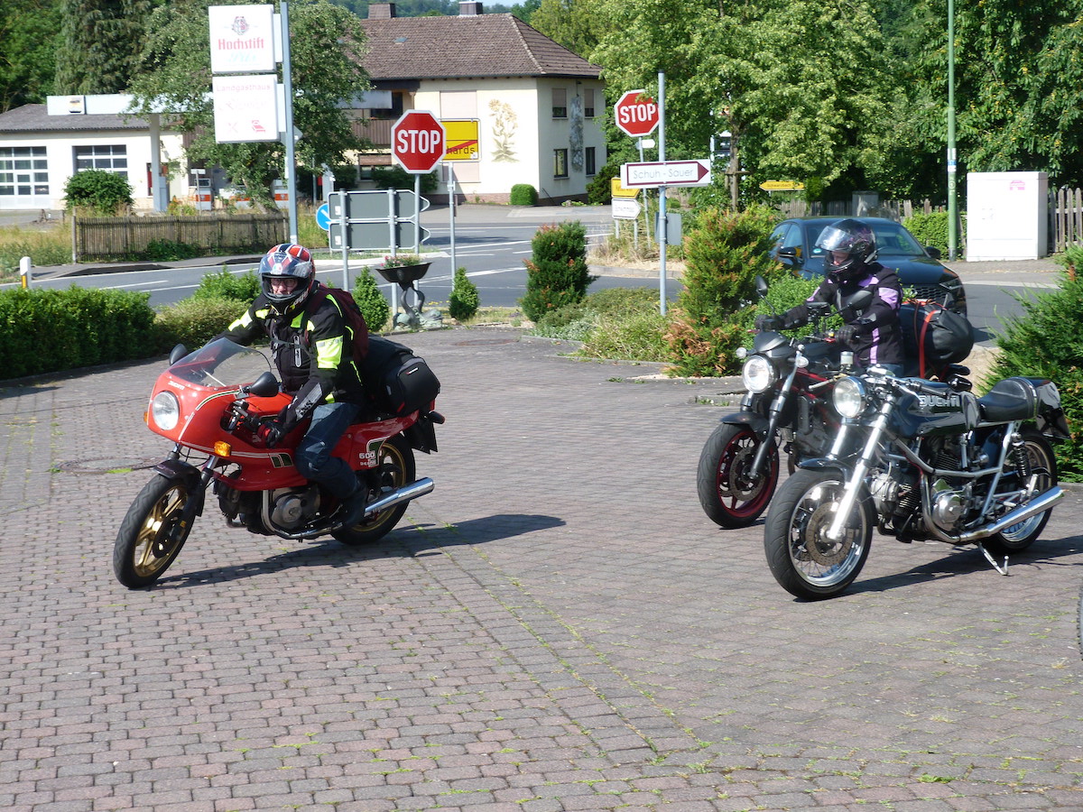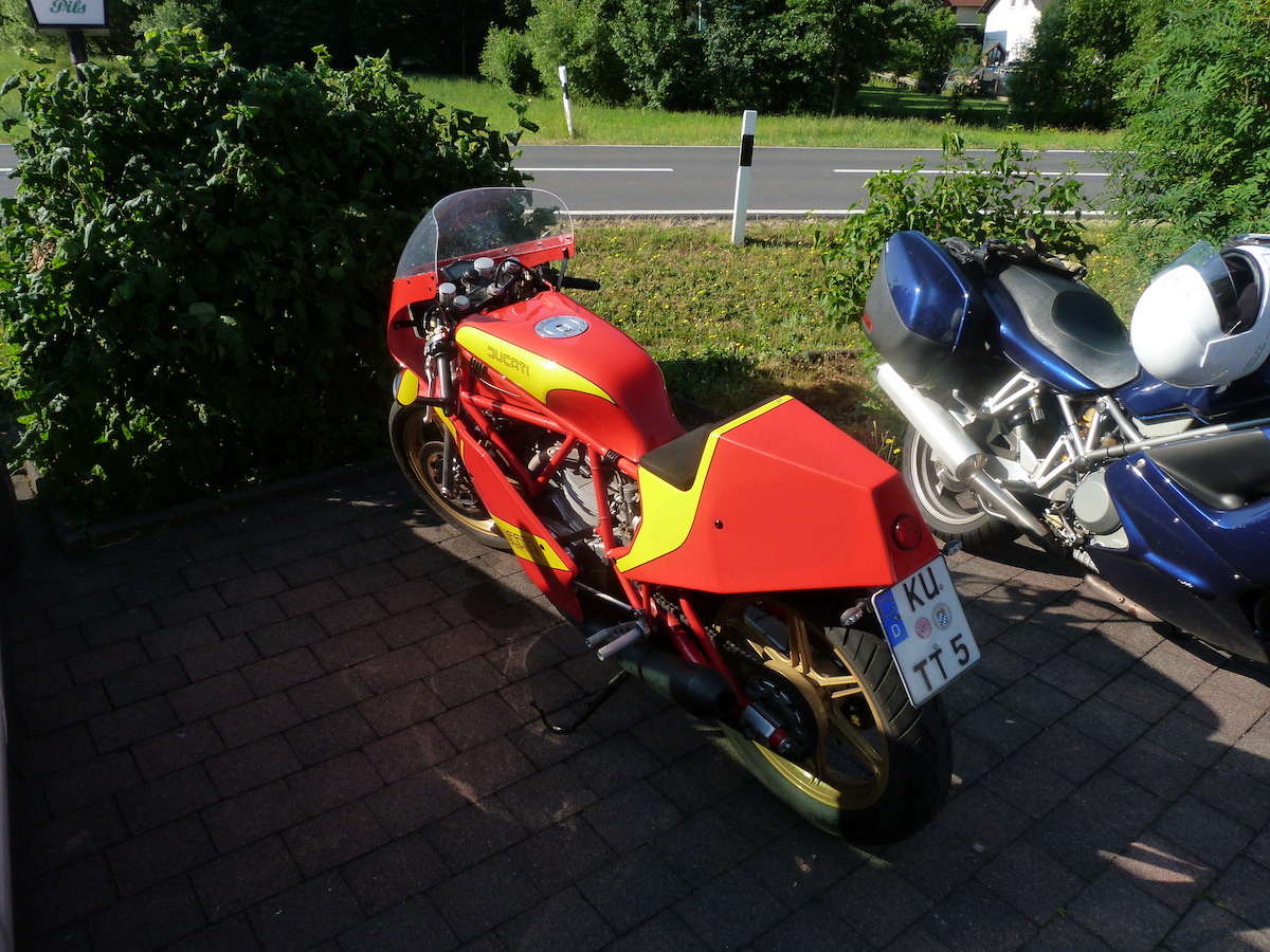 Es gab bei der Ausfahrt auch keine Pannen, außer bei Thomas an der Pantah haben die Blinker hinten nach der Ausfahrt den Geist aufgegeben, das konnten wir jedoch mit Hilfe anderer Blinker und etwas Schrauber Geschick wieder reparieren, so dass das Mopped auch verkehrssicher für die Rückfahrt war.