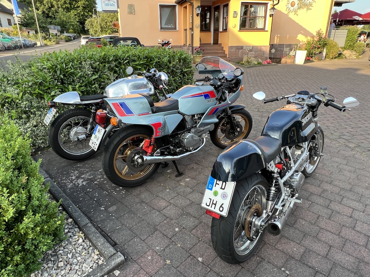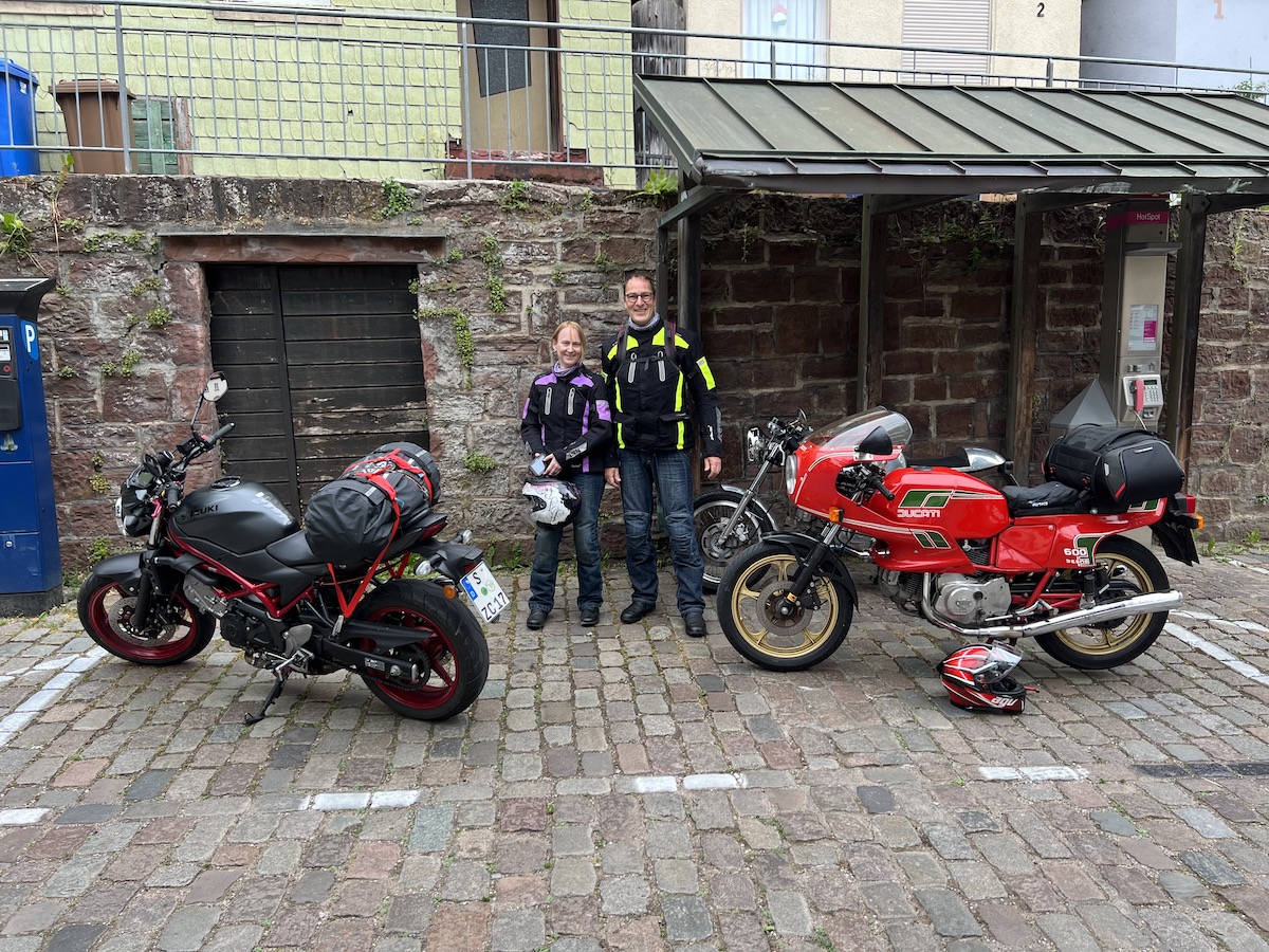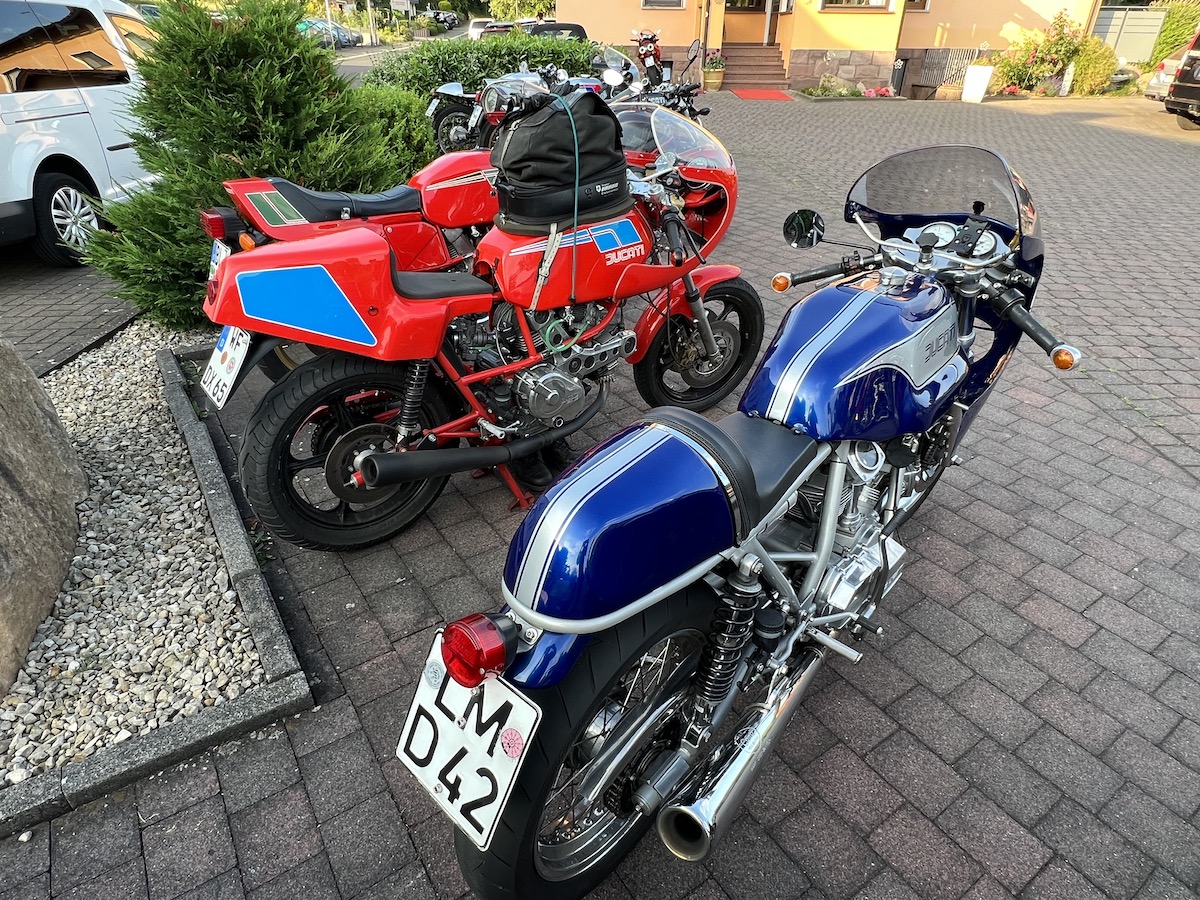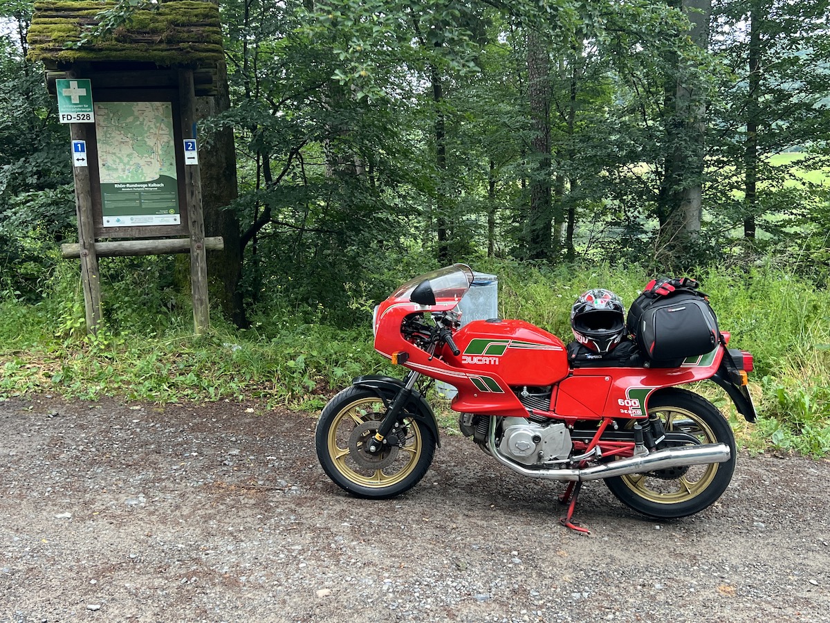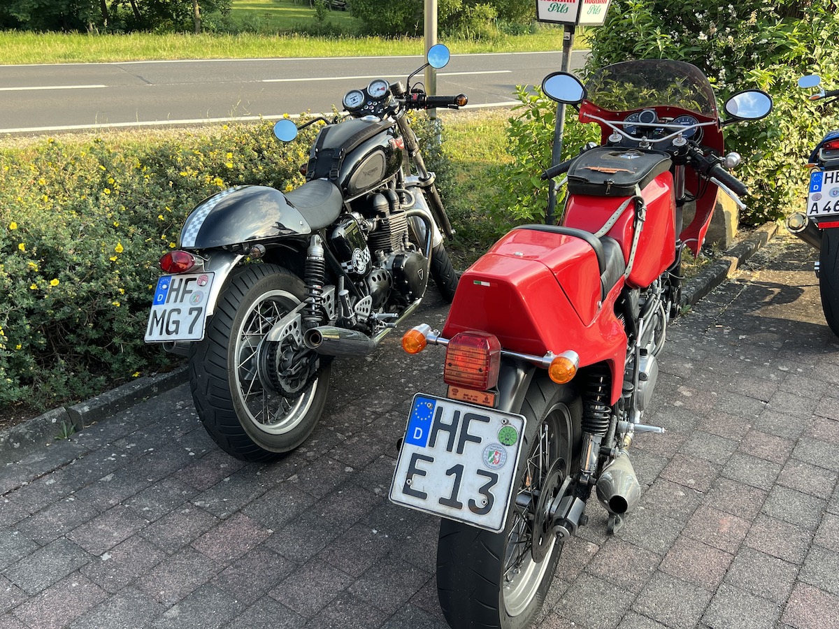 Es gab bei der Ausfahrt auch keine Pannen, außer bei Thomas an der Pantah haben die Blinker hinten nach der Ausfahrt den Geist aufgegeben, das konnten wir jedoch mit Hilfe anderer Blinker und etwas Schrauber Geschick wieder reparieren, so dass das Mopped auch verkehrssicher für die Rückfahrt war.