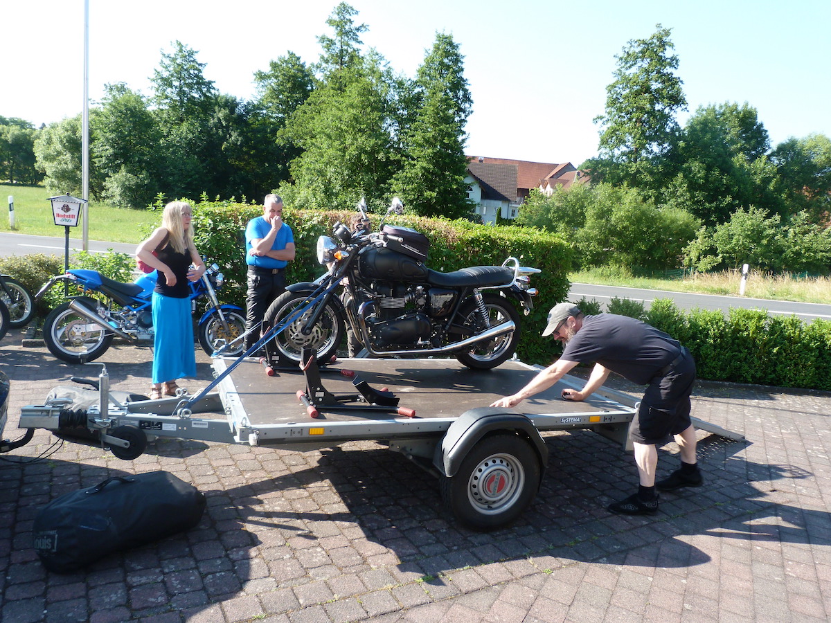 Es gab auch Gäste die schon am Donnerstag angereist sind, da die Anfahrt doch etwas weiter war, Gruß in den hohen Norden 12, Udo und Jacky sind auch schon am Donnerstag mit dem Auto gekommen, so dass wir uns abends bei uns daheim zu einer kleinen Grillparty getroffen haben. Es war Wettertechnisch auch soweit OK, nachdem die Gäste dann im Gasthof waren, fing es an zu regnen, was haben wir ein Glück gehabt.
